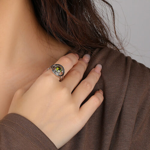 Retro Green Zirconia Ring Adjustable Rings