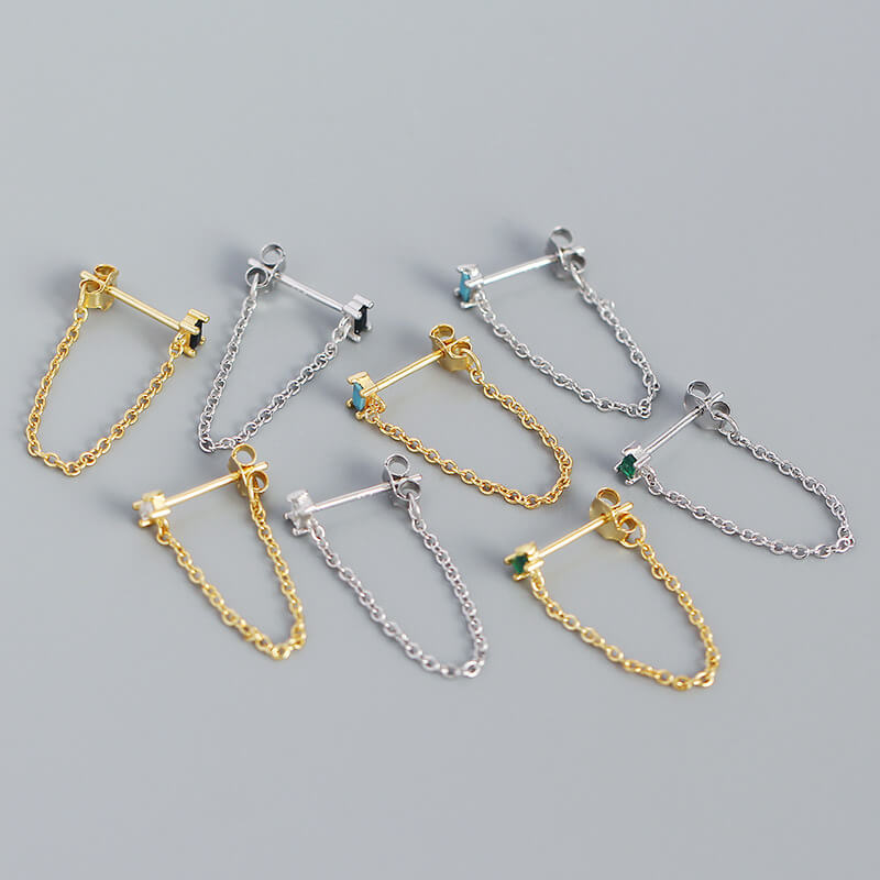 Chain Earrings Silver with Coloured Stone for Wholesale